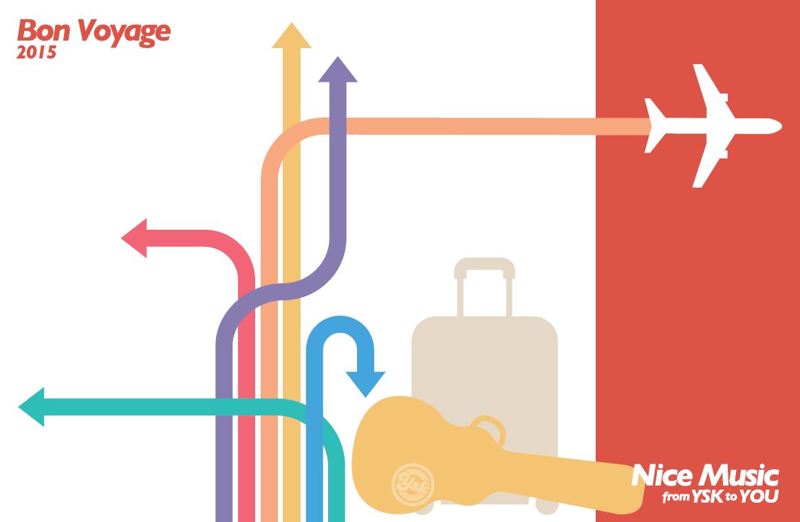 色々な所へどんどん向かう飛行機と、ギターケースとスーツケース。